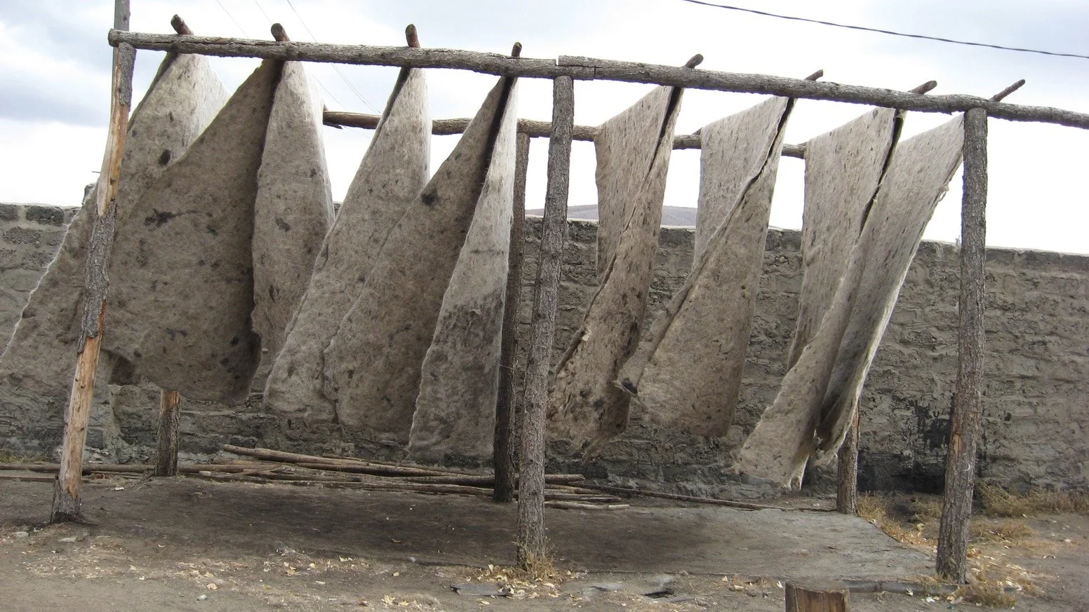I pezzi di feltro vengono appesi o stesi all’aria aperta e asciugati.
